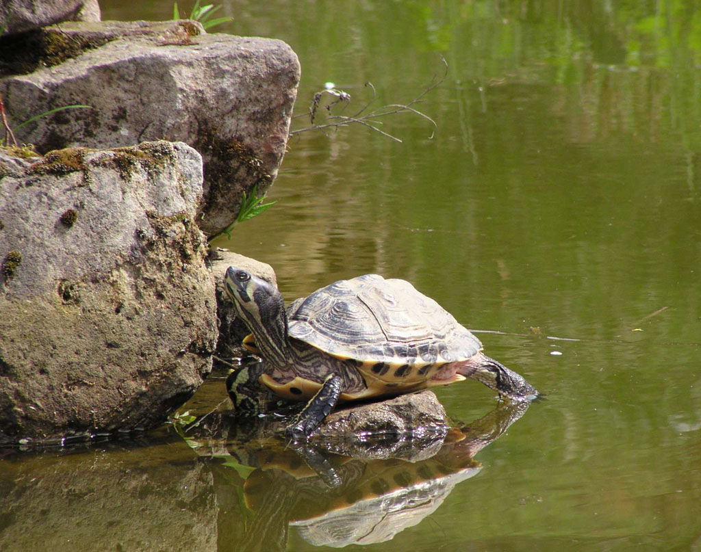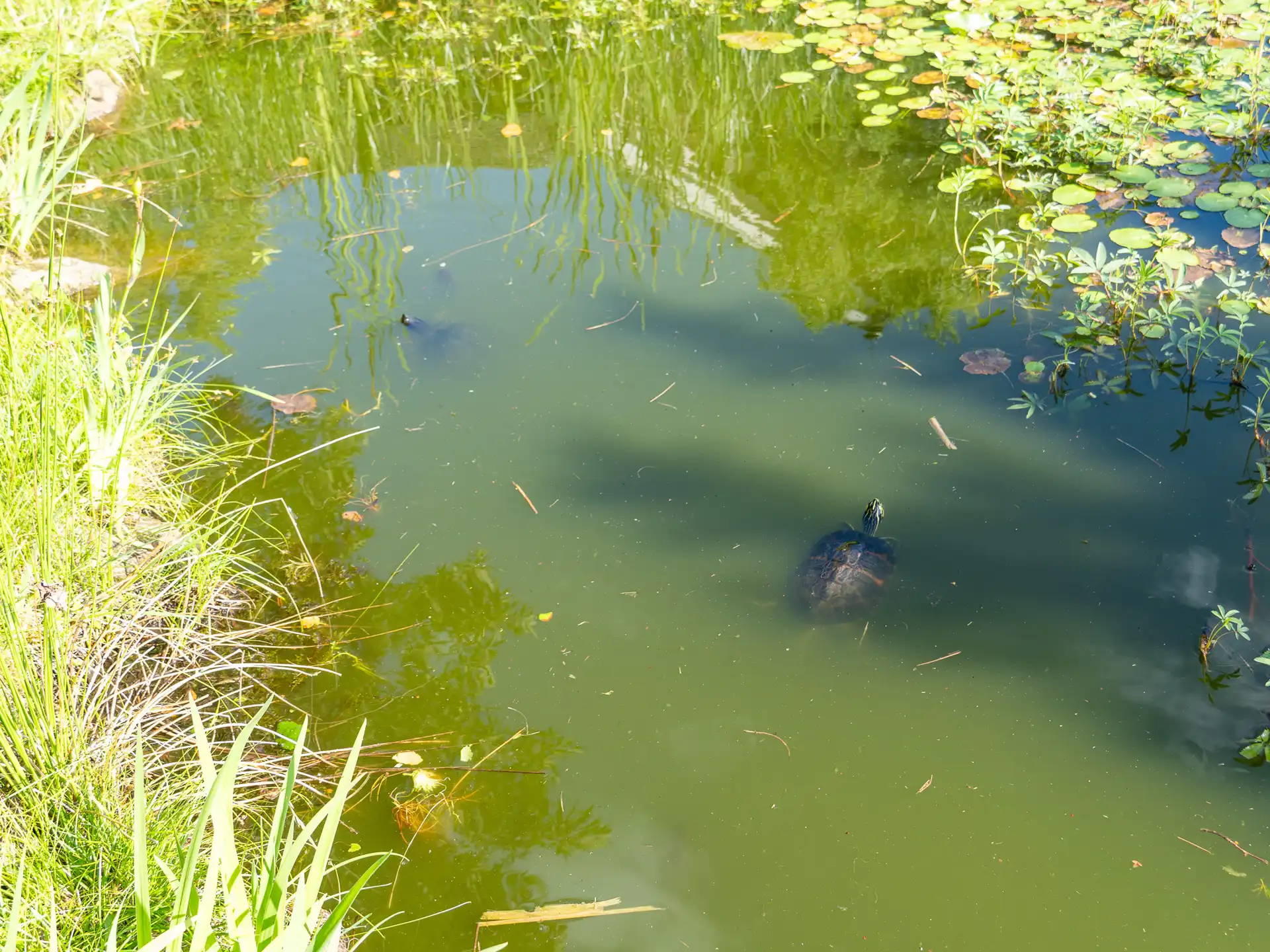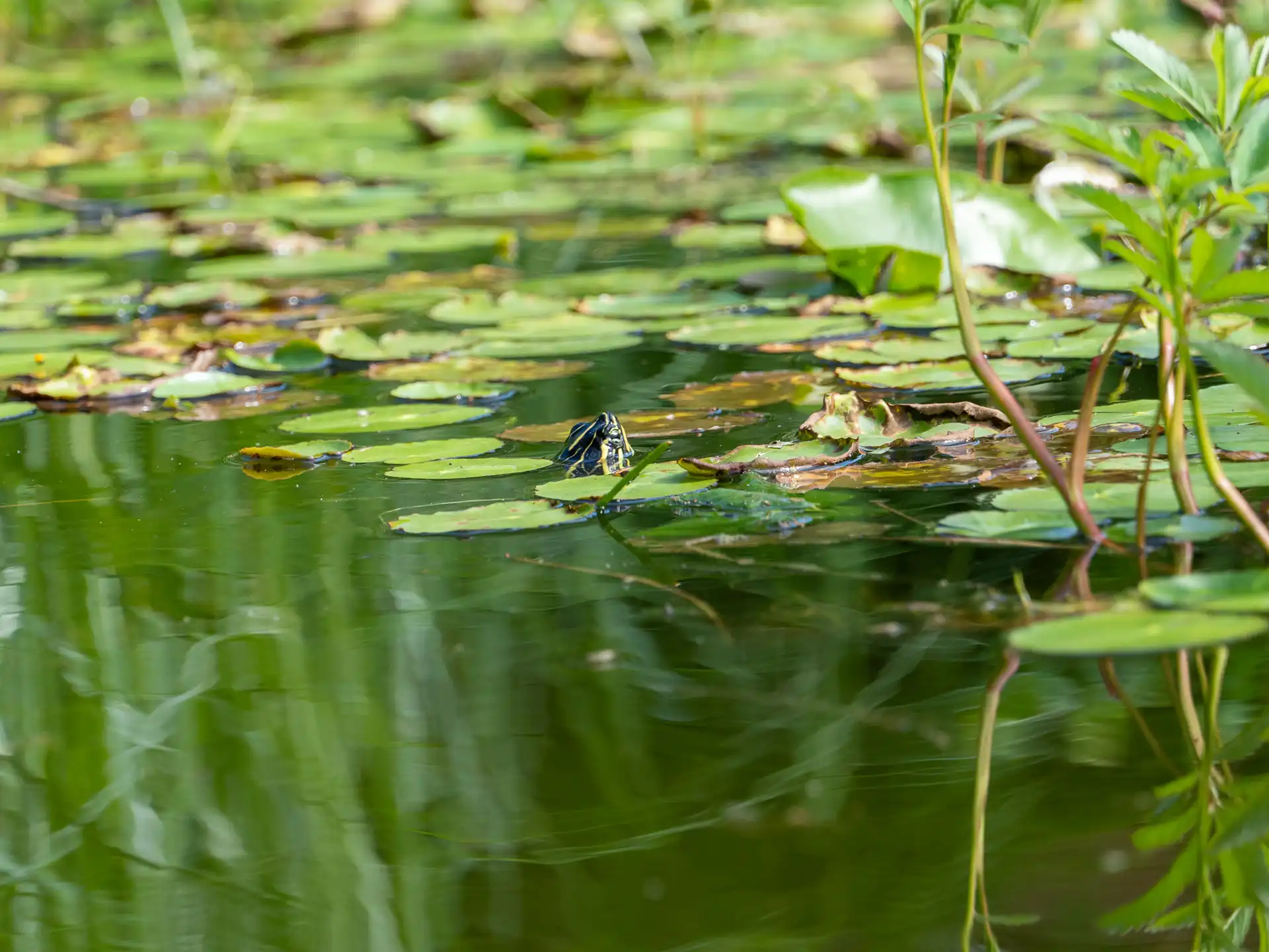 Das besondere Urlaubserlebnis stellt unser idyllischer Teich dar, in dem verschiedene Fischarten, Wasserschildkröten und vom Aussterben bedrohte Europäische Sumpfschildkröten leben.